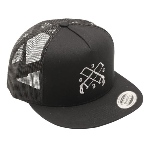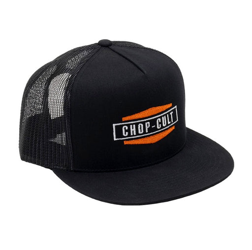 ChopCultEmbroidered in the USA on a YP classic flat bill trucker hat. Black hat with gold logo embroidery.