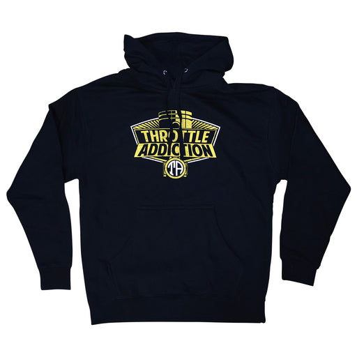Throttle AddictionThis black midweight hoodie is printed in Eau Claire WI. It features our signature Throttle Addiction piston logo. Printed in the USA