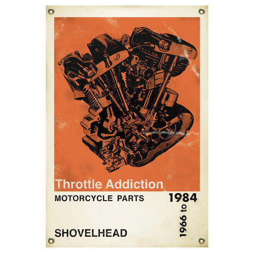 Throttle AddictionDesigned to resemble the MoCo shop manuals of the glory days, this heavy duty vinyl banner can take all the sparks, smoke and stale beer you and yo...